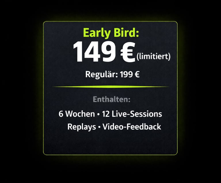 ✅ 1× pro Woche persönliches Video-Feedback (30–60 Sek Clip)